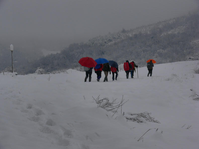 Il nostro abbigliamento colorato contrasta col candido paesaggio
