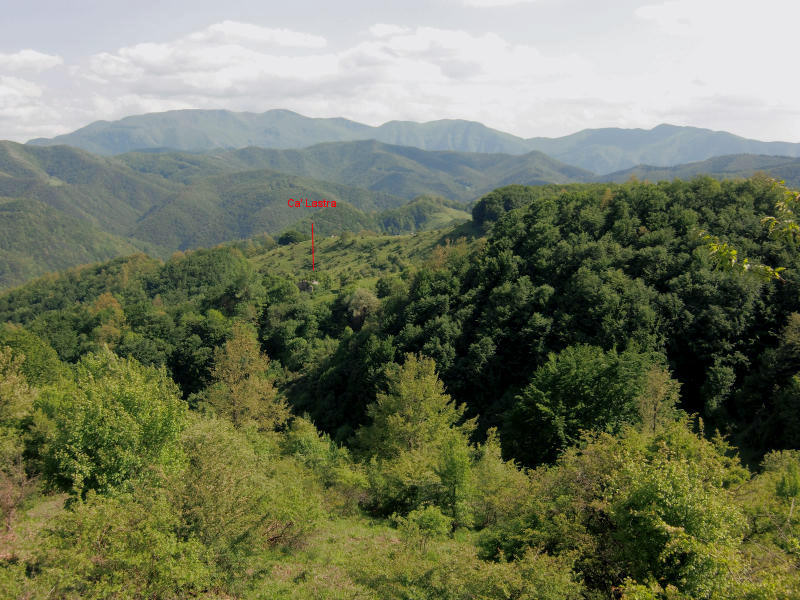 Veduta panoramica verso Ca' Lastra; sullo sfondo Monte Falco e Monte Falterona