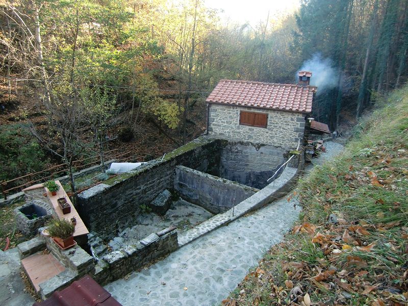 Il bottaccio e il ristrutturato mulino sul Fosso di Serravalle
