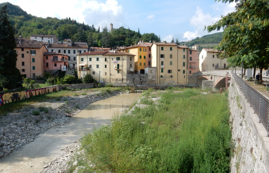Il Fiume Montone torbido per la recente pioggia attraversa Rocca San Casciano