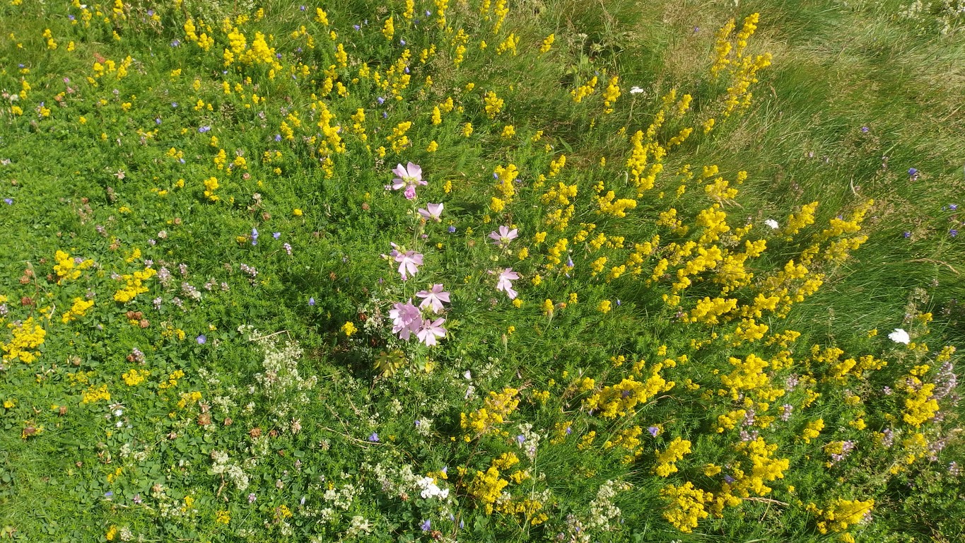Un primo piano dei fiori che ricoprono i Prati della Burraia e ...