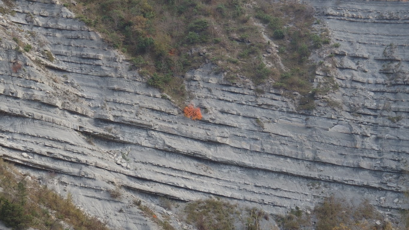 Un piccolo puntino colorato nella grigia parete verticale a lato del Torrente Para