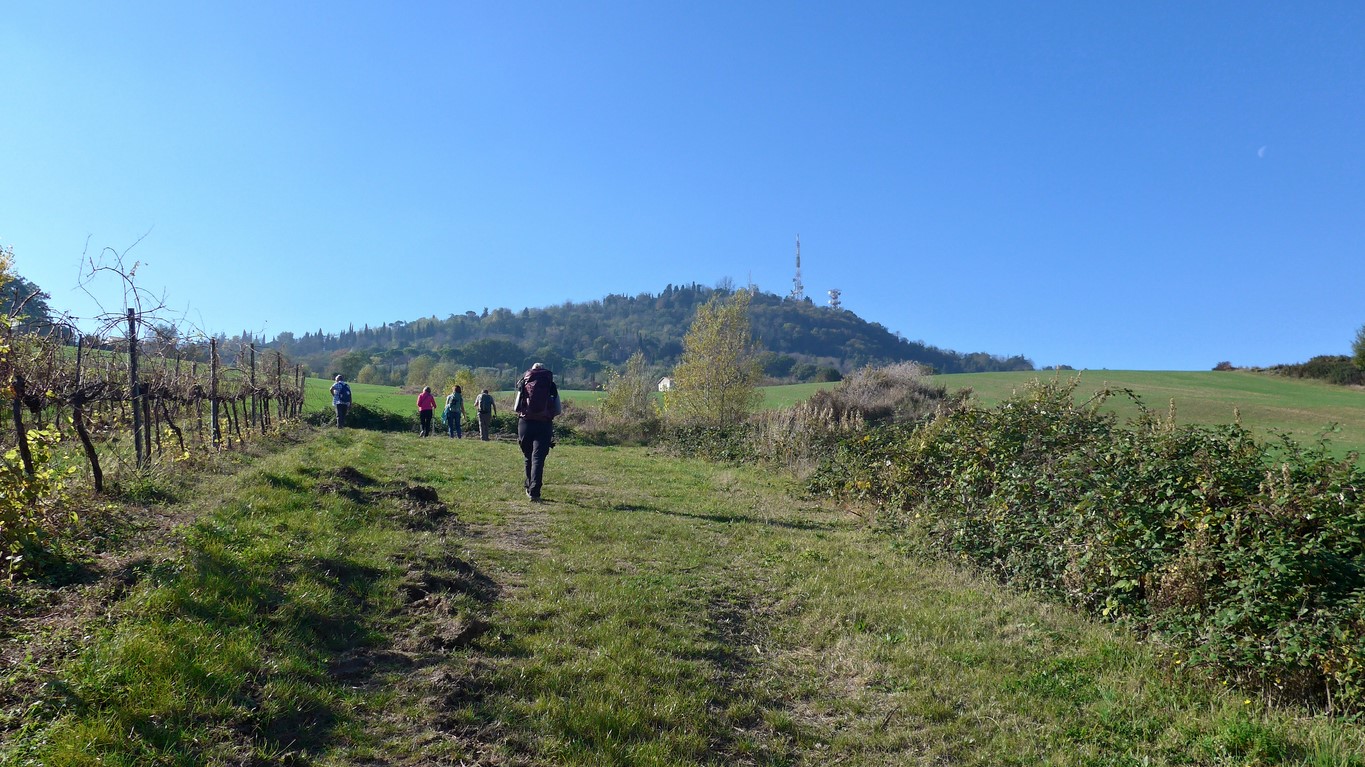 Sul sentiero dello Spungone sullo sfondo di Monte Maggio