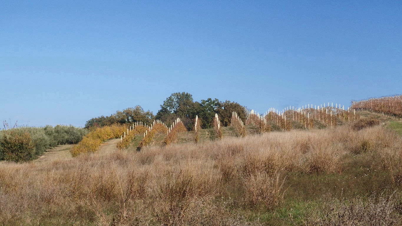 Filari di viti che seguendo l'inclinazione del terreno assumono una curiosa forma ad arco