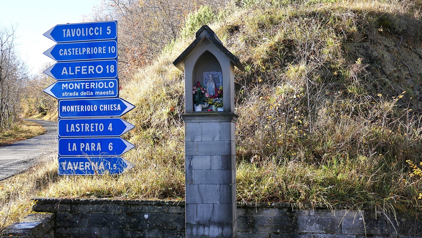 Maestą e indicazioni al bivio fra Via Lastreto e la SP FC 135