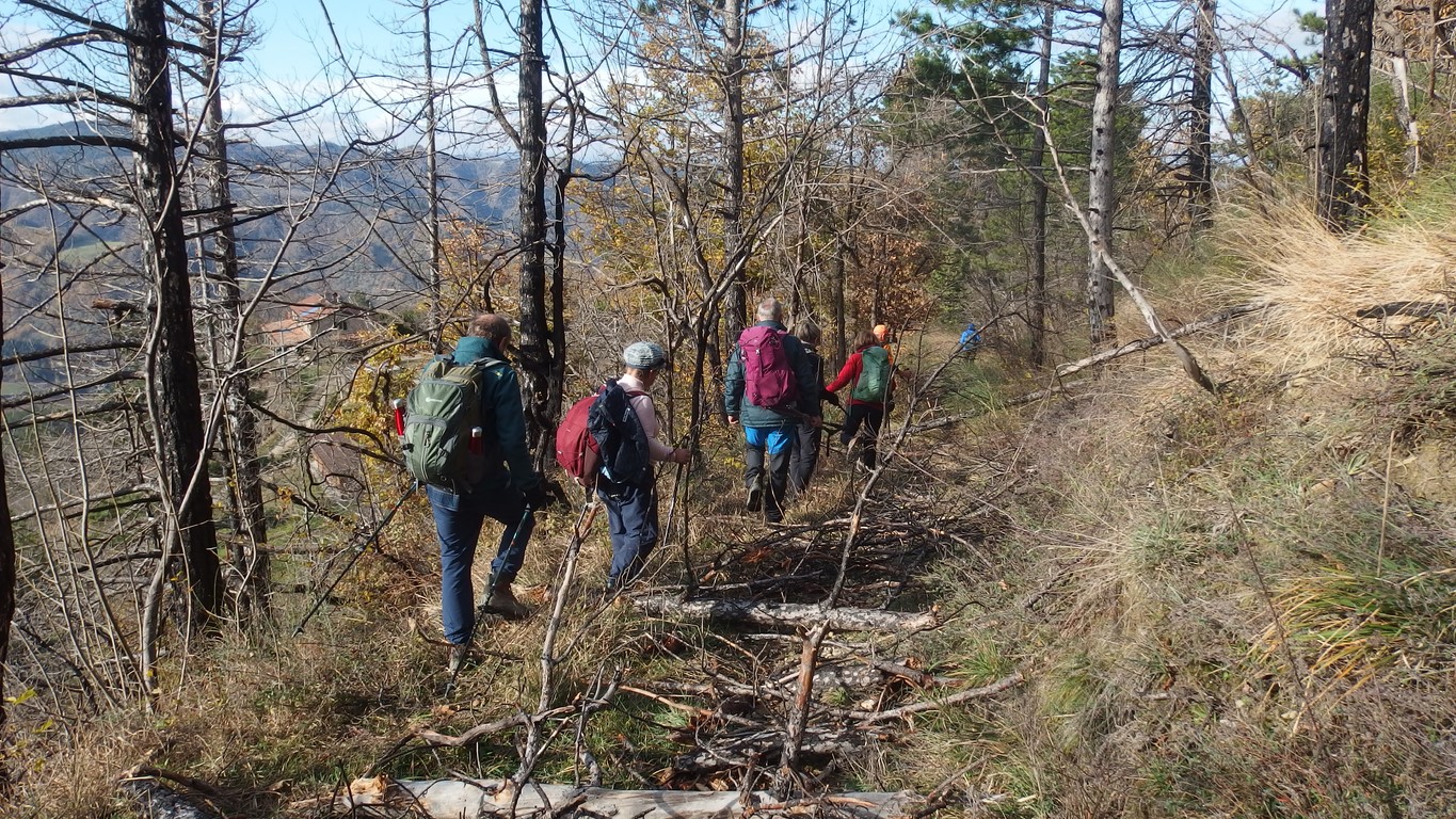 Il sentiero è pieno di rami e tronchi che sembrano messi a posta per impedire il passaggio