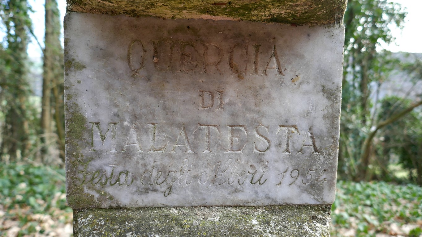 La targa davanti alla quercia, che ricorda l'evento
