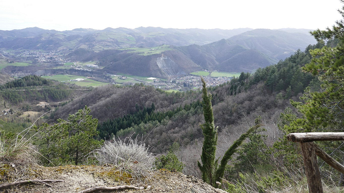 Veduta verso la Valle del Bidente dal sentiero CAI 301; a dx Galeata, a sx Civitella di Romagna