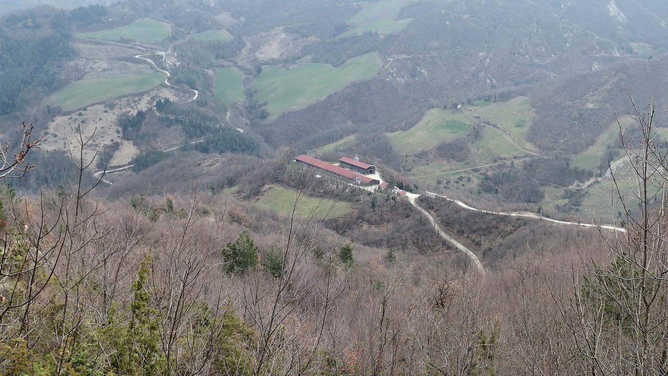 I capannoni di Tracollina e la stradina che sale agli Ortali dallo stradello per Campodonicato