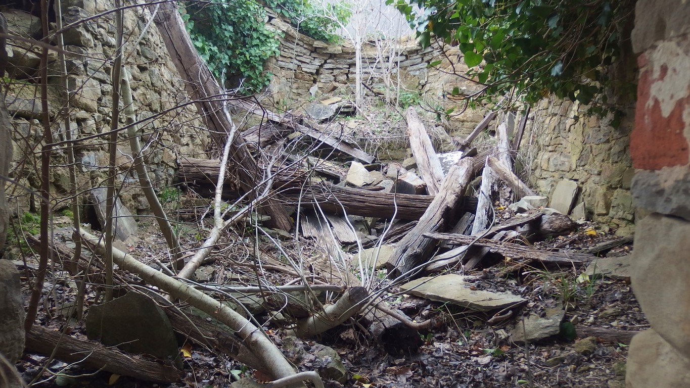 L'interno della chiesetta; si distingue ancora il muro rotondo dell'abside