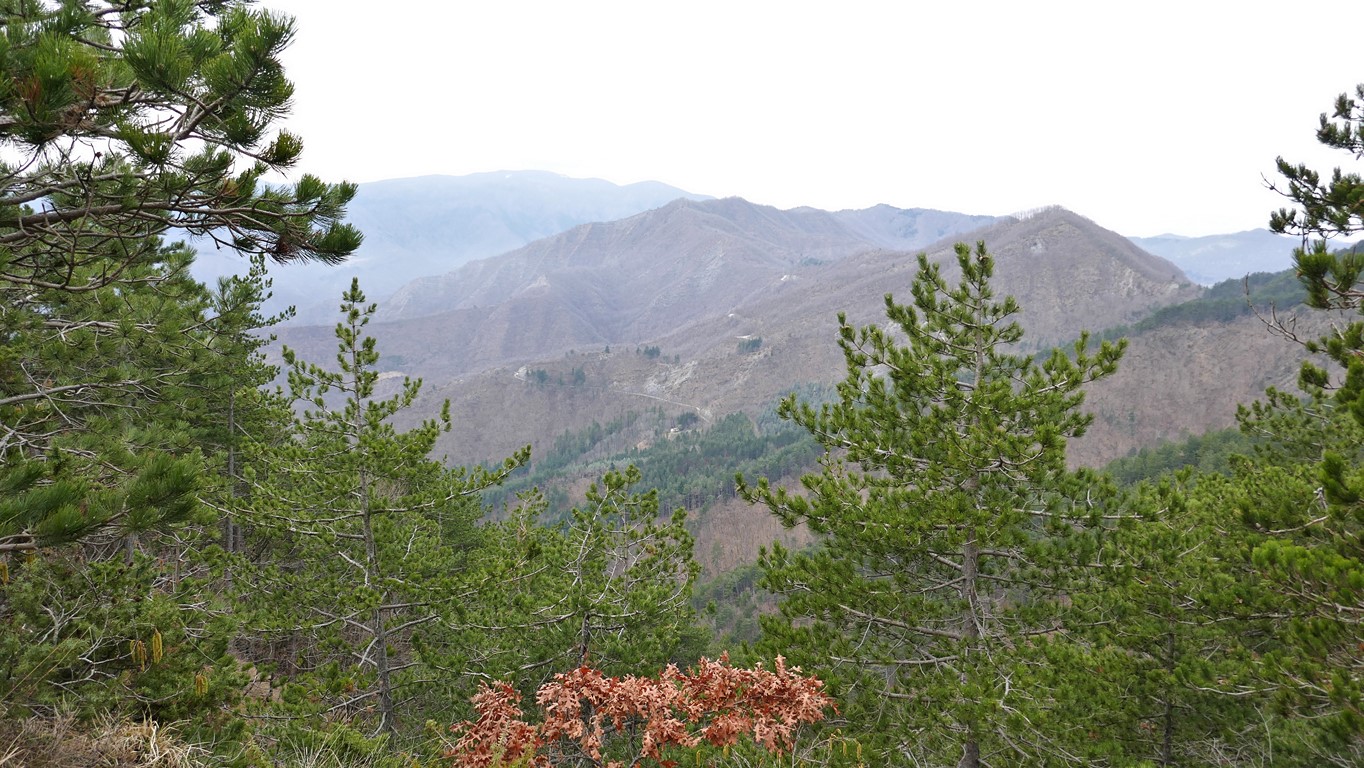 Veduta verso la valle del Fosso di Valdonasso; si distingue la strada che sale al Passo della Braccina