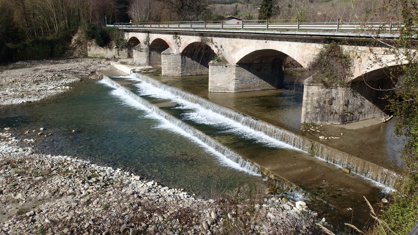 Le limpide acque del Fiume Bidente sotto il ponte della SP4 presso Cusercoli