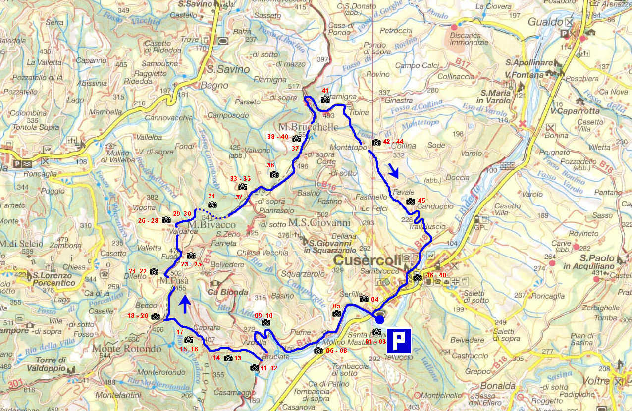 Da Cusercoli al crinale spartiacque Fiume Rabbi - Fiume Bidente |