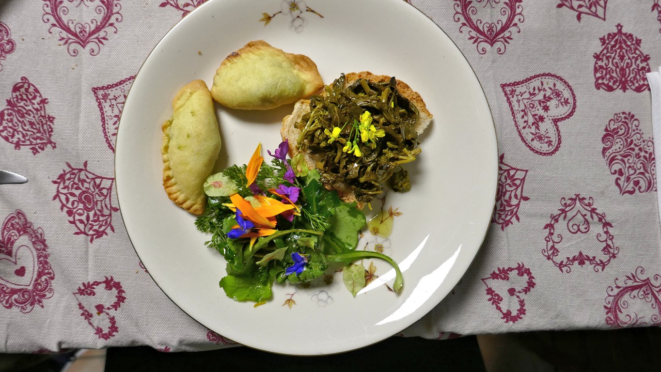 sott'olio; Crescioncini di frolla con aspraggine (Helminthotheca