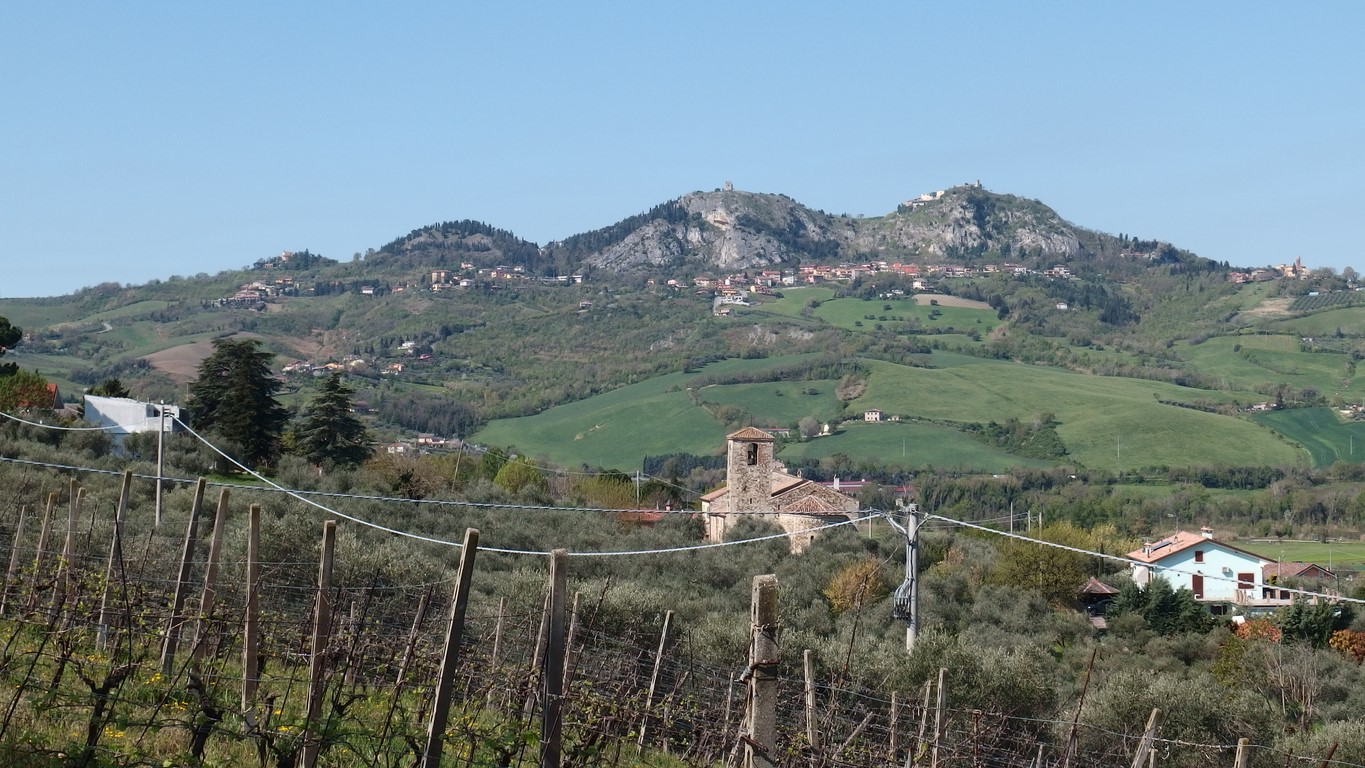 Veduta verso Torriana; in primo piano la chiesa romanica