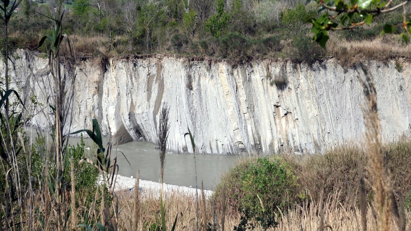 La particolare conformazione della riva sx del Fiume Marecchia in questo tratto
