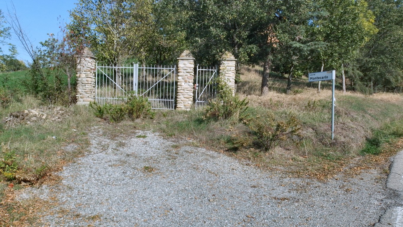 Cancello con colonne in pietra all'ingresso di Montecarlo